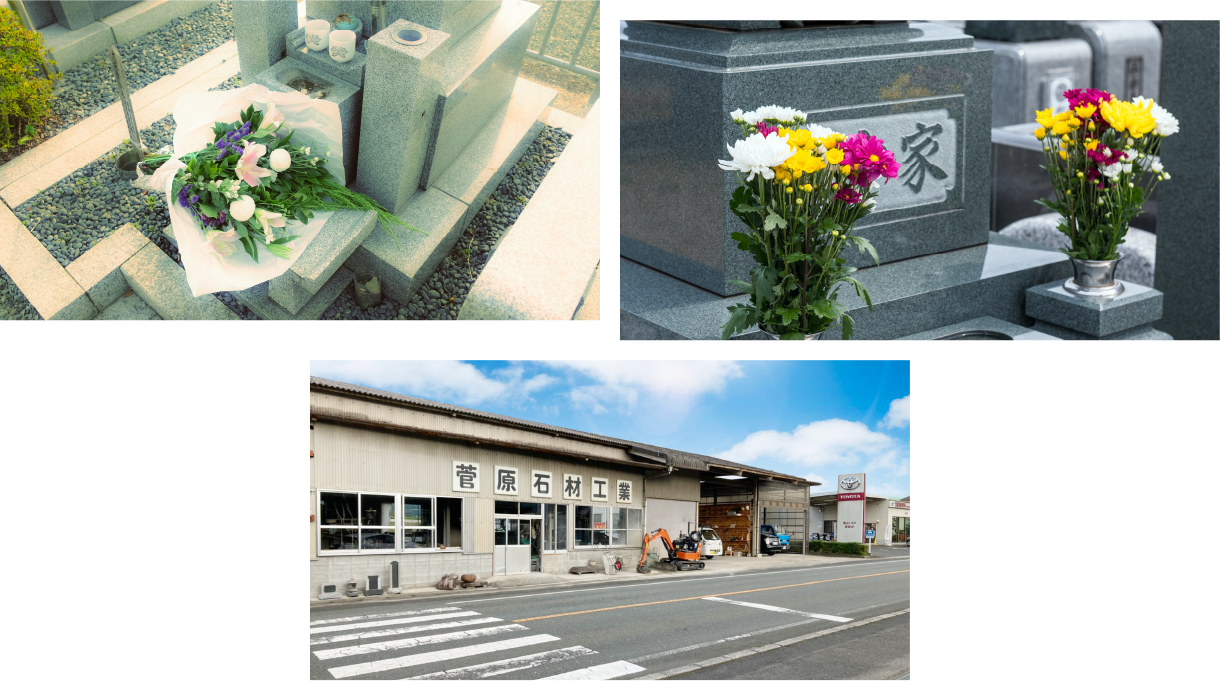 当店はお墓・石に携わって65年になる菅原一行が、真庭市とその周辺地域のお墓を作りお守りしてまいりました。